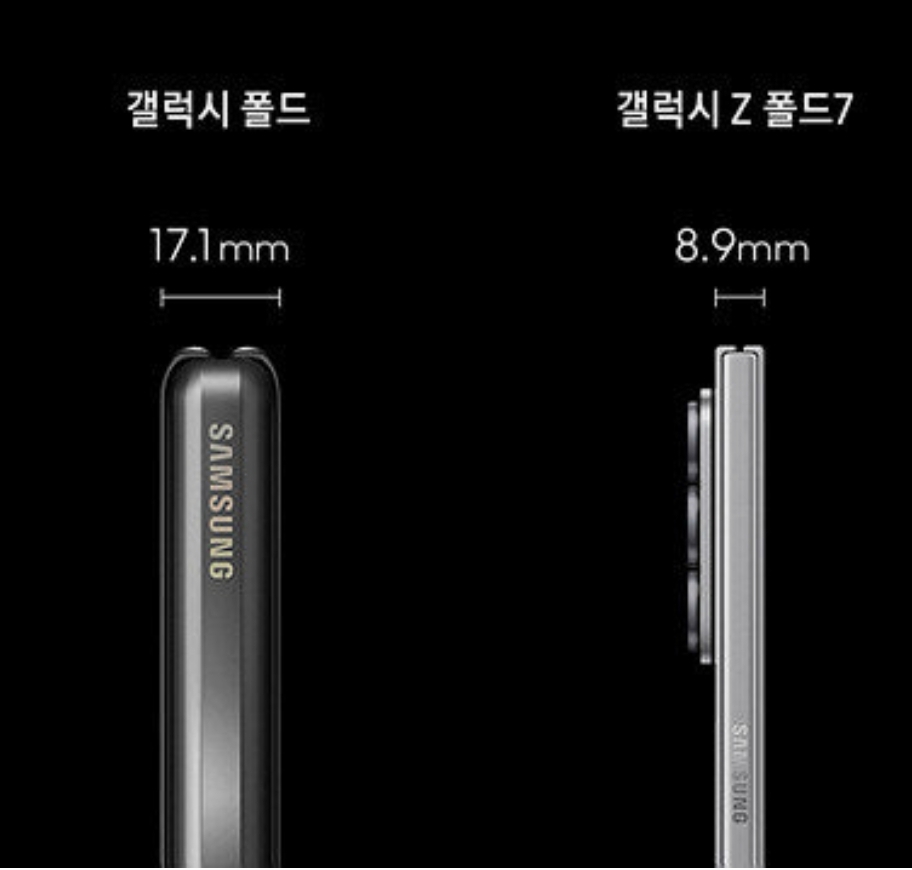 폴더블 스마트폰의 가장 큰 약점으로 지적되던 '두꺼운 두께'는 갤럭시 Z 폴드 시리즈의 끊임없는 기술 혁신을 통해 점진적으로 개선되어 왔습니다. 하지만 갤럭시 Z 폴드 7은 단순한 개선을 넘어, 두께를 획기적으로 줄여 사용성을 완전히 새로운 차원으로 끌어올렸다는 점에서 높은 평가를 받고 있습니다.