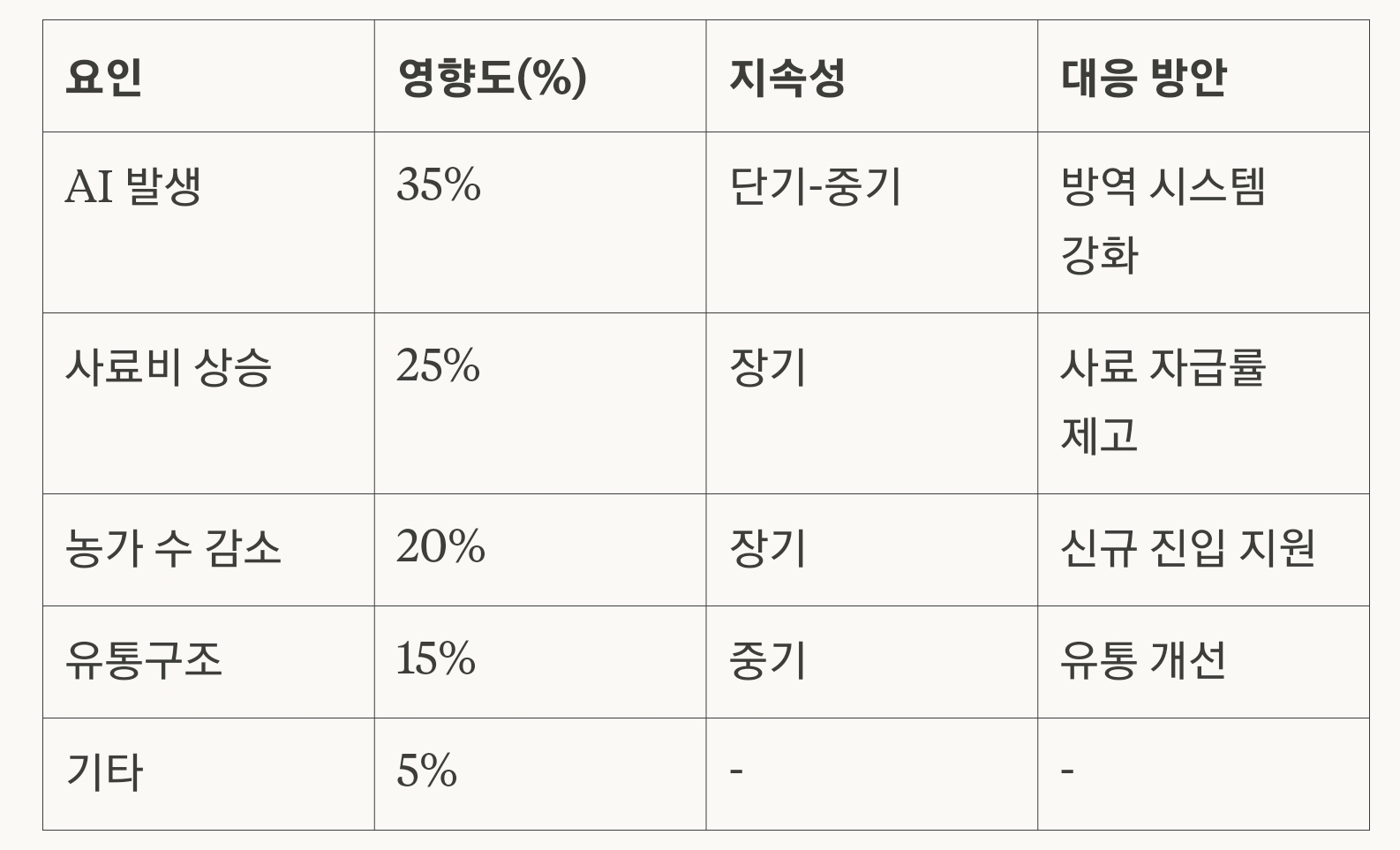 공급자(산란계 농가) 수 감소: 대규모 살처분으로 인해 많은 농가가 폐업하면서, 살아남은 소수의 대형 농장들이 시장에서 더 큰 발언권을 갖게 되었습니다.
