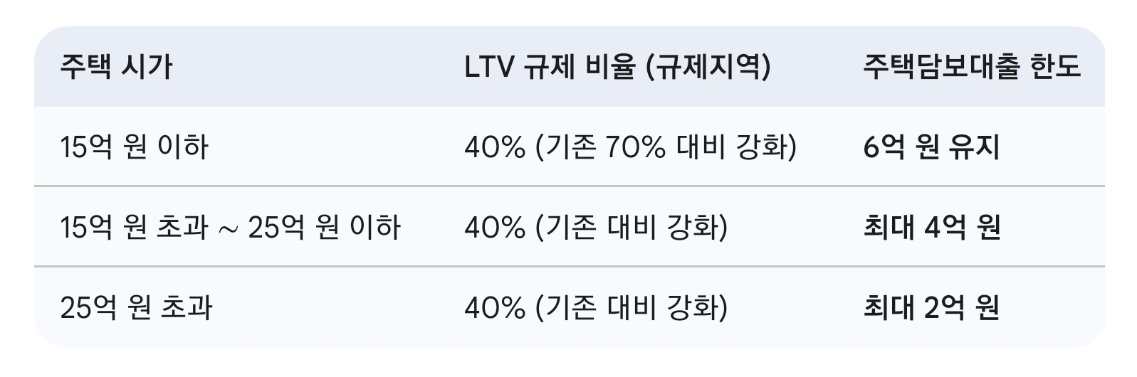 ㅡ LTV 및 주택담보대출 한도 대폭 축소 (10월 16일 시행)