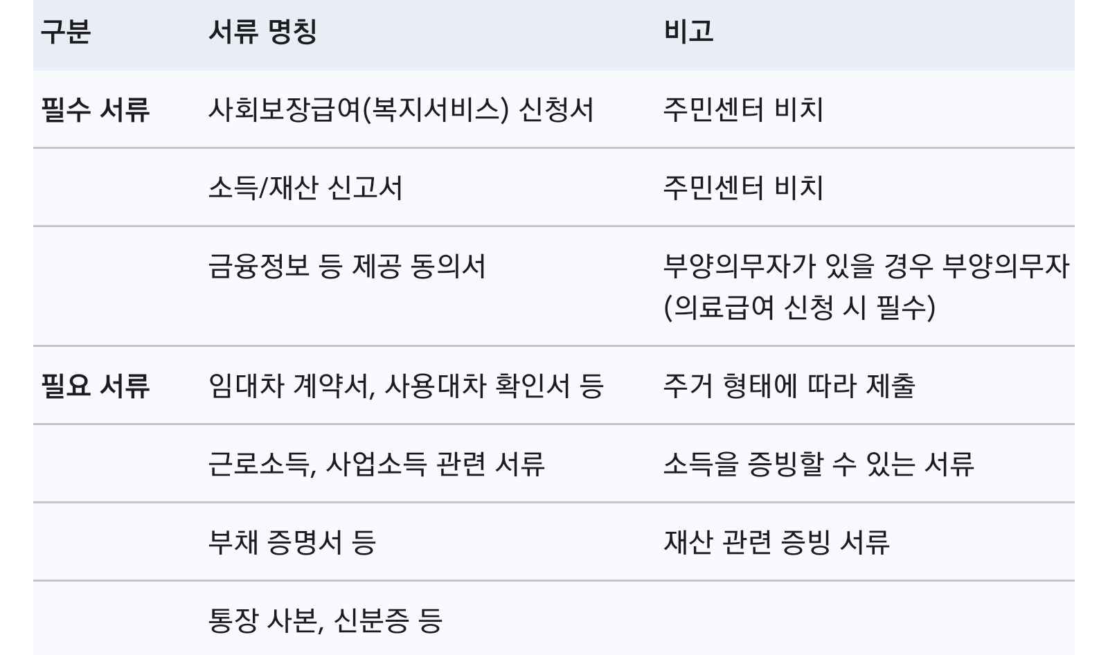 신청 시 제출 서류 (필수 및 필요 서류)