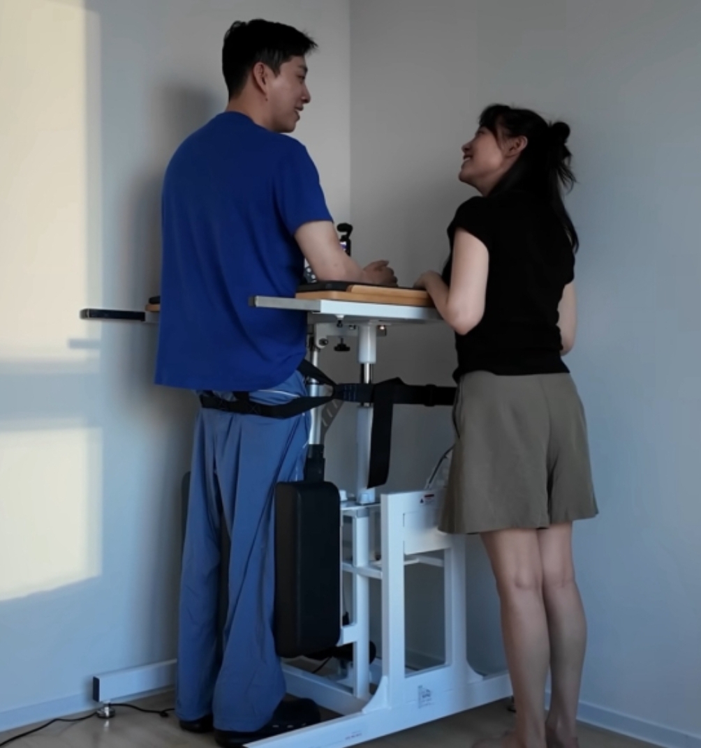 몸의 중심을 잡고 무게를 지탱하는 훈련을 통해 신체 균형 감각을 회복하는 데 중요한 역할을 합니다. 이는 향후 독립 보행 재활의 기초가 됩니다.