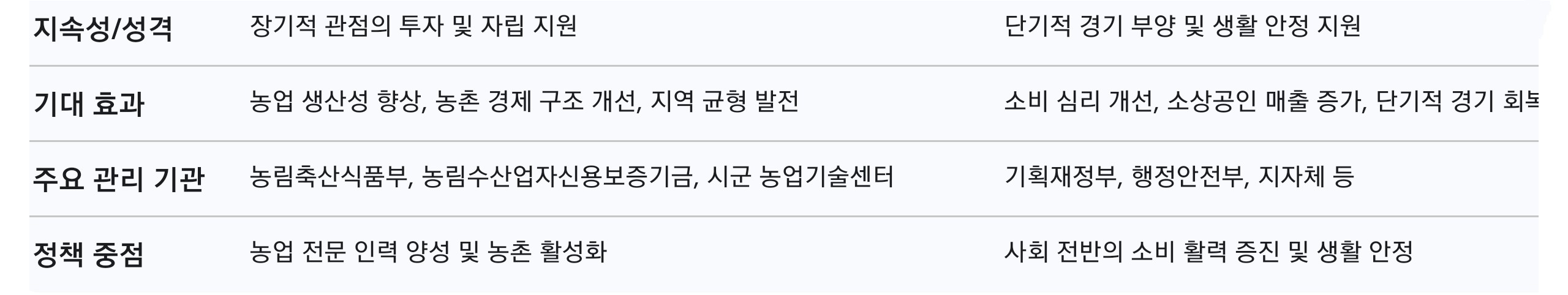 비교 분석: 귀농 지원과 민생회복지원금의 성격 및 목표